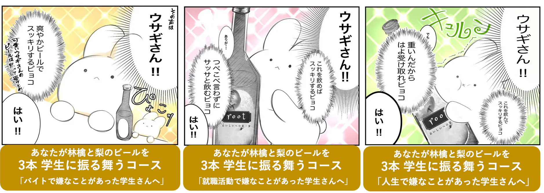 あなたの優しい言葉とともに、学生に【林檎と梨のビール root】を振る舞ってください。
