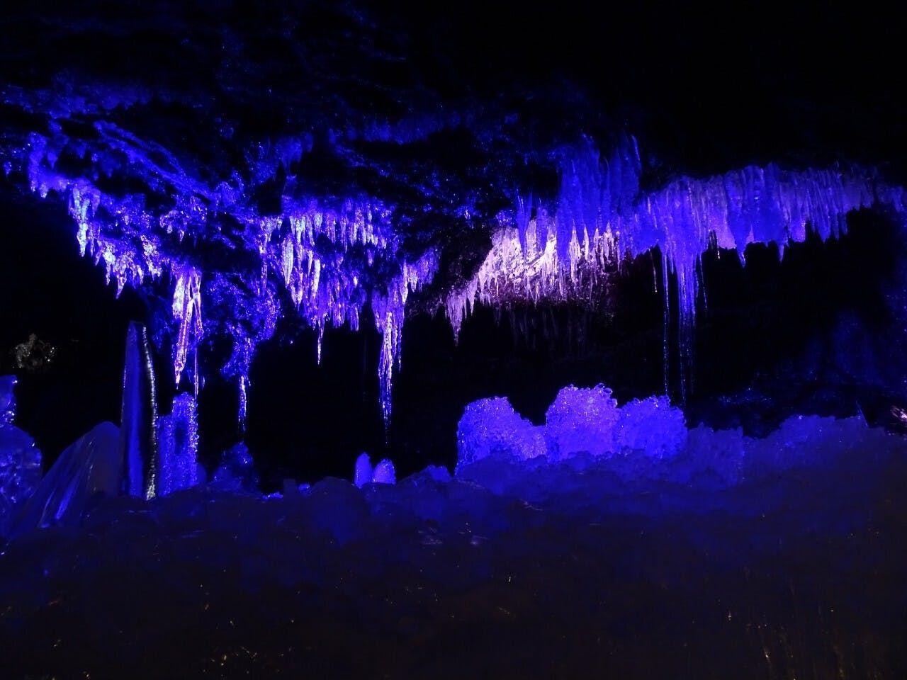 これらの写真は実際に私たちが樹海ツアーで撮影した写真です。樹齢400年の木が大迫力でそびえ立っていたり、100m以上奥の真っ暗な洞窟の中で、大きな氷柱を見たり、今まで見たこともない世界が広がっていました。