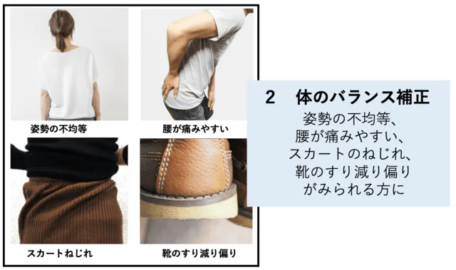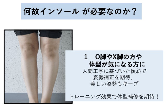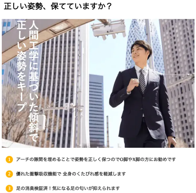 ① アーチの隙間を埋めることで姿勢を正しく保つのでO脚やX脚の方にお勧めです。