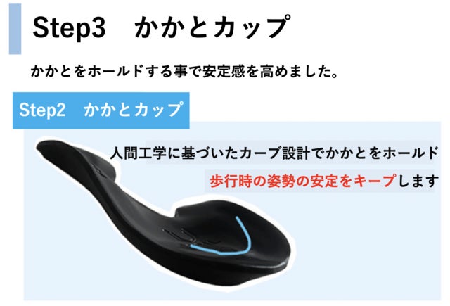 人間工学に基づいた傾斜で設計した BIBAL(ビバル)インソールを開発しました。