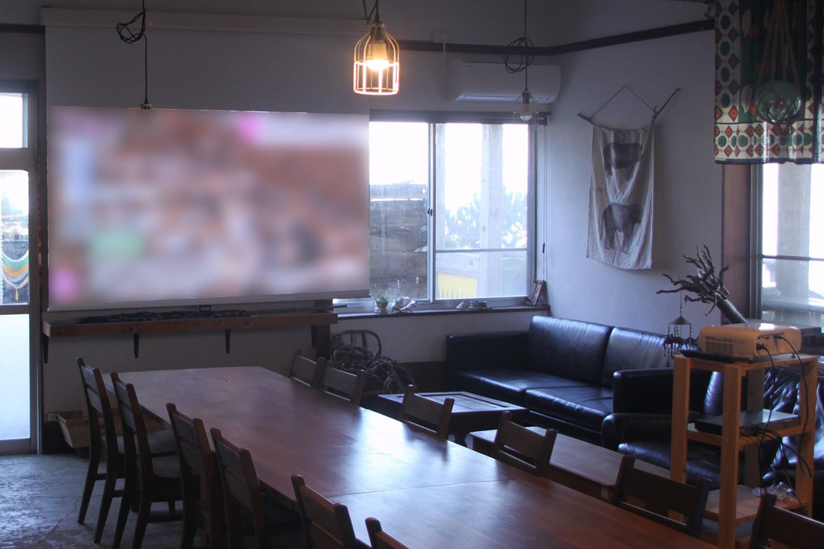 プロジェクターも設置しています!普段と違った環境で会議すると新しいアイデアが湧いてくるかも!