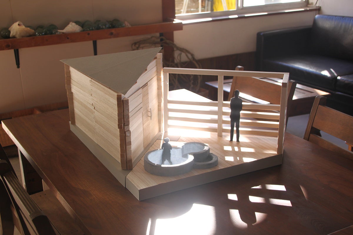 母校でもある早稲田大学の学園祭に行った時に、一級建築士の古谷教授とお話する機会がありました。サウナの話を相談したところ建築学科の生徒の良い経験にもなると設計を引き受けてくださることになり、ワクワクするような模型も作成していただきました。