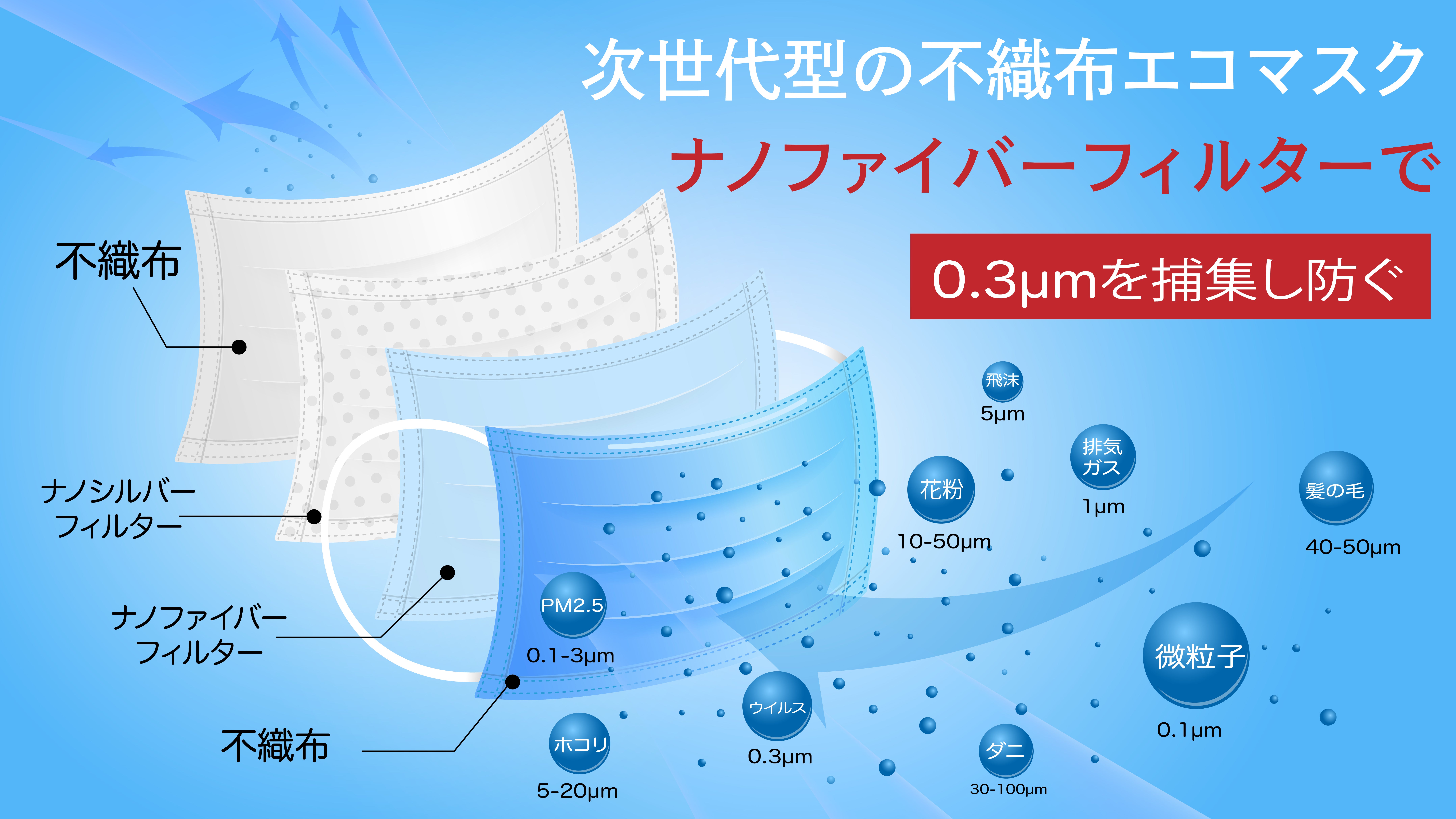 次世代型の不織布エコマスクで使用しているナノファイバーフィルターは