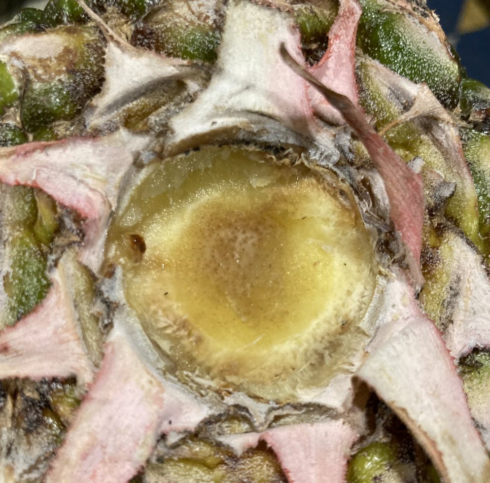 弊社のパイナップルは農家直送ですので、どうしても輸送中に底の表面に発生するカビを日本で除去することができず、お客様にお届けしております。