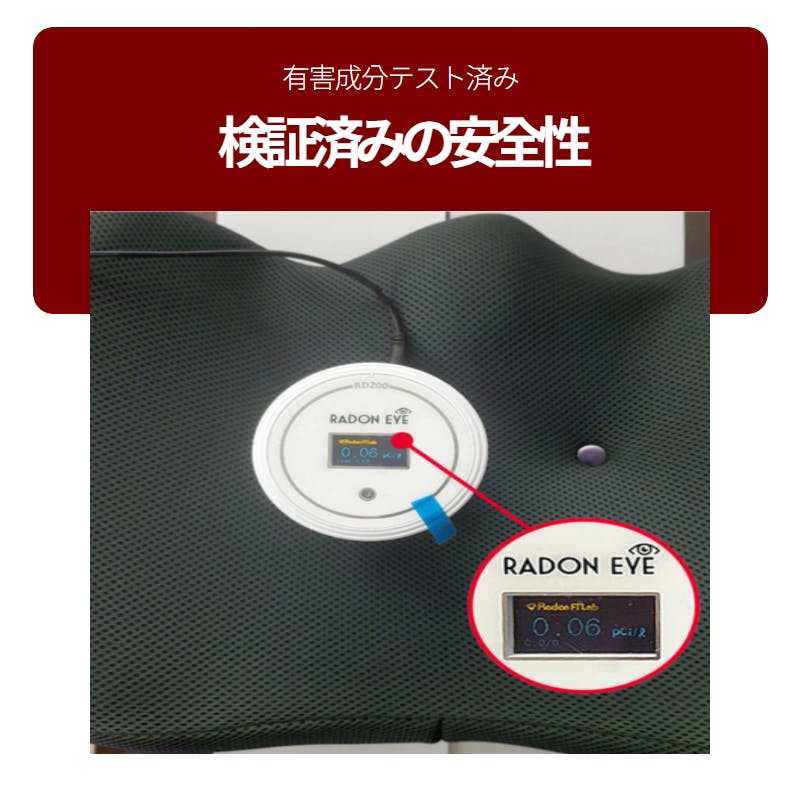 ホルムアルデヒド、アリルアミン、ph濃度、ラドンまで有害成分検出テストを完了しました。 ホルムアルデヒドは検出されず、アリールアミンも5mg未満の結果となりました。(正常範囲30mg以下)ph濃度も平均値6.3を記録して正常範囲内(0~14)にあることが立証されました。 ラドンは、0.06pCiIで環境部の安全基準値である4pCiIよりはるかに低い数値です。
