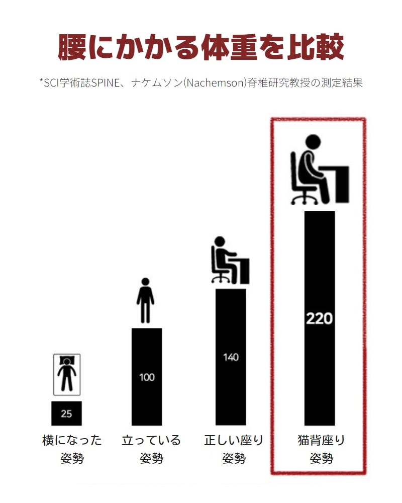 腰への負担が一番大きい姿勢が、「腰の湾曲」であることはご存知ですか? 腰が曲がった状態で座ると正しい姿勢でいるよりも腰への負担が1.5倍以上にもなることが判明しています。腰に負担がかかると必然的に骨盤にも悪い影響が及ぶのです。.