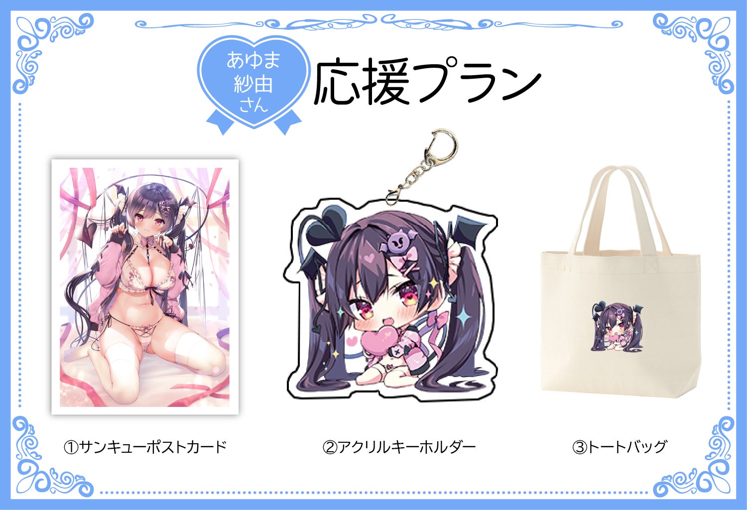 今回限定のSDキャラを使った部屋着でもちょっとしたお出かけでも着ていきやすいキャラTシャツや、衣装の元になったキャライラストがアクリルスタンドになったプランです!