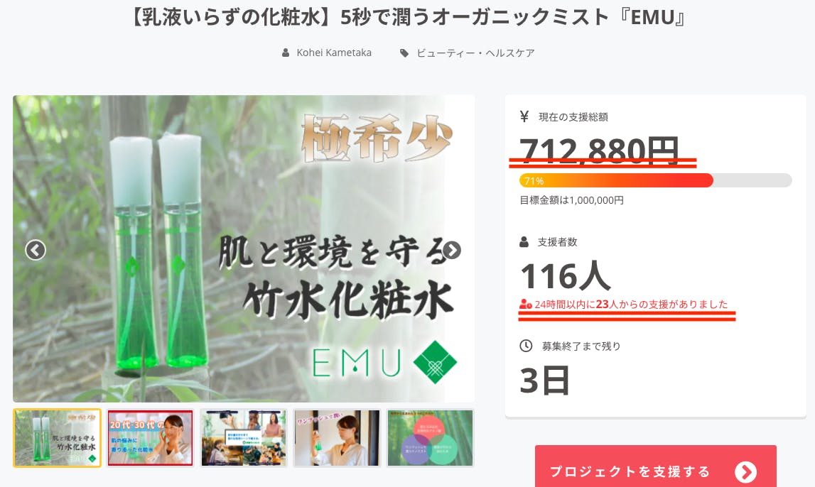 24時間の間に23人もの方々にご支援いただきました!