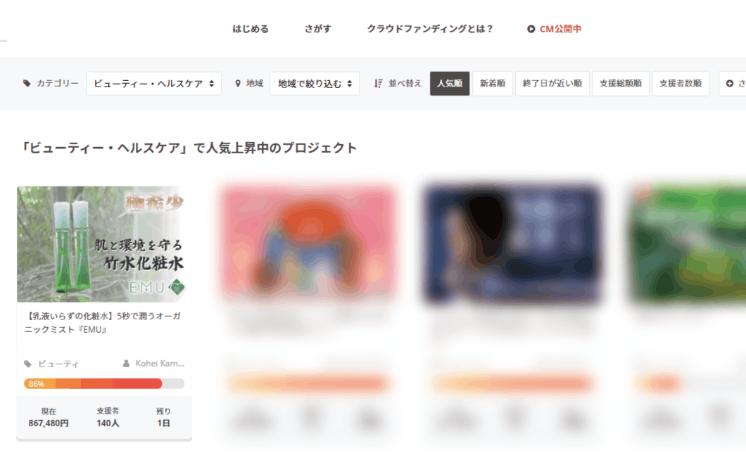 こちら「ビューティー・ヘルスケア」部門での人気プロジェクトでTOPに表示されております!