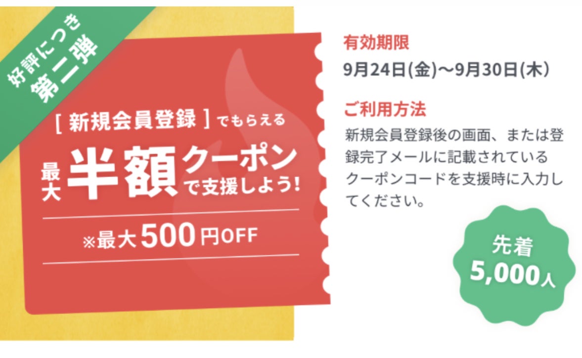 現在、CAMPFIREでは半額キャンペーンを行っているそうですので、ぜひお友達の方にもシェアをお願い致します!
