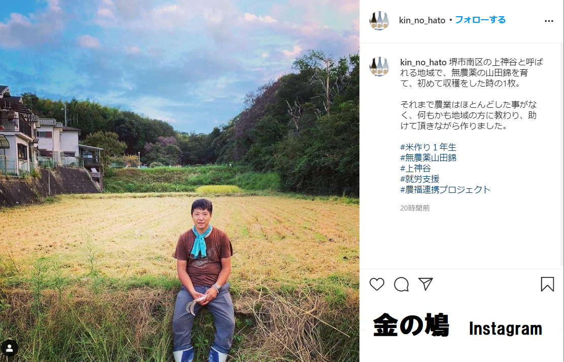 私たちはお米づくりの中で、「障がいのある人」が支援される人ではなく、その強味を生かして農業分野で活躍し、自信や生きがいを持って社会とつながりをつくれることをこの日本酒「金の鳩」とともにメッセージとして社会に届けたいと思います。