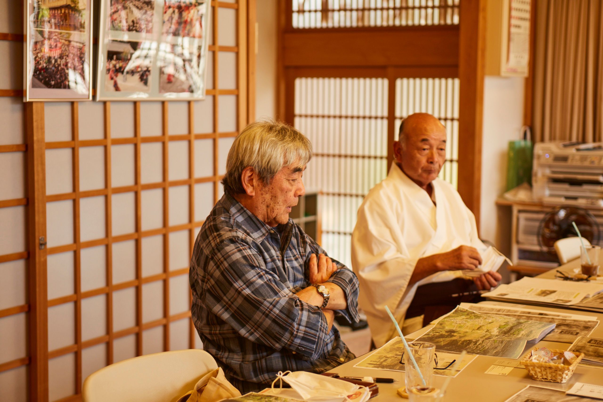 ▼師匠の八田さんと今回の奉納先櫻井神社の神主さん