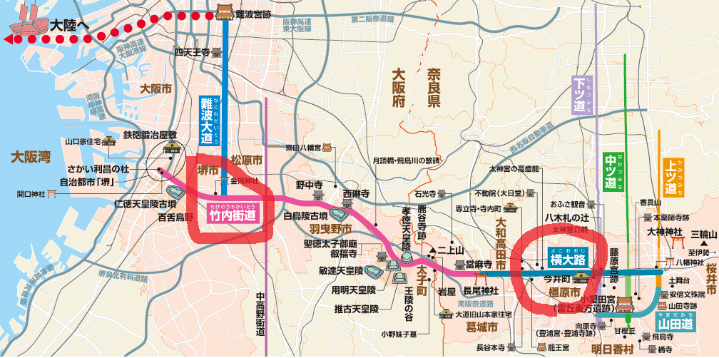 ▼日本遺産:日本最古の国道「竹内街道・横大路(大道)」(松原市HPより)