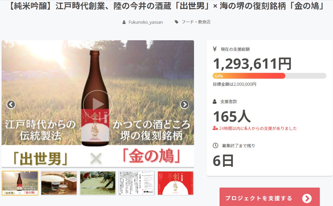 \「金の鳩」オンライン交流会VOL6/2021年9月17日金曜日 19:00 〜20:30 蔵元とオンライン吞み!【ソーシャルディスタン☆酒】「金の鳩」オンライン交流会VOL6今年の夏は雨がたくさん降りましたが、みなさんいかがお過ごしでしょうか?日本酒「金の鳩」2022年に向けて、着々と「ヤオヨロズヤ」では無農薬の酒米「山田錦」の栽培が進み、夏の暑さにも雨にも負けず、田んぼでは順調にお米が育っています。これまで過去5回にわたり開催してきた金の鳩オンライン交流会「ソーシャルディスタン酒」今回は、参加者の方々からもご要望が多かった日本酒づくりのお話が聴ける特別企画。河合酒造16代目当主の西川暁子さんをゲストに、江戸時代より受け継がれる蔵元「河合酒造」からLIVE配信でオンライン交流会を開催!しかも、「金の鳩」と地域食材のおつまみを家で食べながら、酒造りの伝統やお酒の特徴など、日本酒の作り手と一緒に交流することができます。ご希望の方には、当日までに「金の鳩おつまみセット」をお届けします。お家にいながら、「金の鳩」で乾杯!ぜひこの機会に金の鳩オンライン交流会「ソーシャルディスタン酒」にご参加ください。■河合酒造さんfacebookページhttps://www.facebook.com/syusseotoko=========蔵元とオンライン吞み!【ソーシャルディスタン☆酒】「金の鳩」オンライン交流会VOL6▼開催日時2021年9月17日(金)19時~20時30分▼ゲスト河合酒造 16代目当主 西川暁子さん株式会社ふくのこ 代表取締役 増田 靖さん▼内容・河合酒造の日本酒づくり・金の鳩トークセッション河合酒造 西川暁子さん × ㈱ふくのこ 代表取締役 増田 靖・参加者と交流タイム▼定員 30名▼参加料金下記いずれかご購入ください。*クラファン支援者の方は購入なしでイベント参加のみも可能です。▼参加方法こちらの参加申込フォームよりお申込みください。https://forms.gle/UVpfA6ZKMhRW8wDn8▼イベント参加*参加申込〆切 9/16(木)9/17(金)当日までに「金の鳩」おつまみセットをご自宅に到着ご希望の方は9/9(木)までに申し込みください。