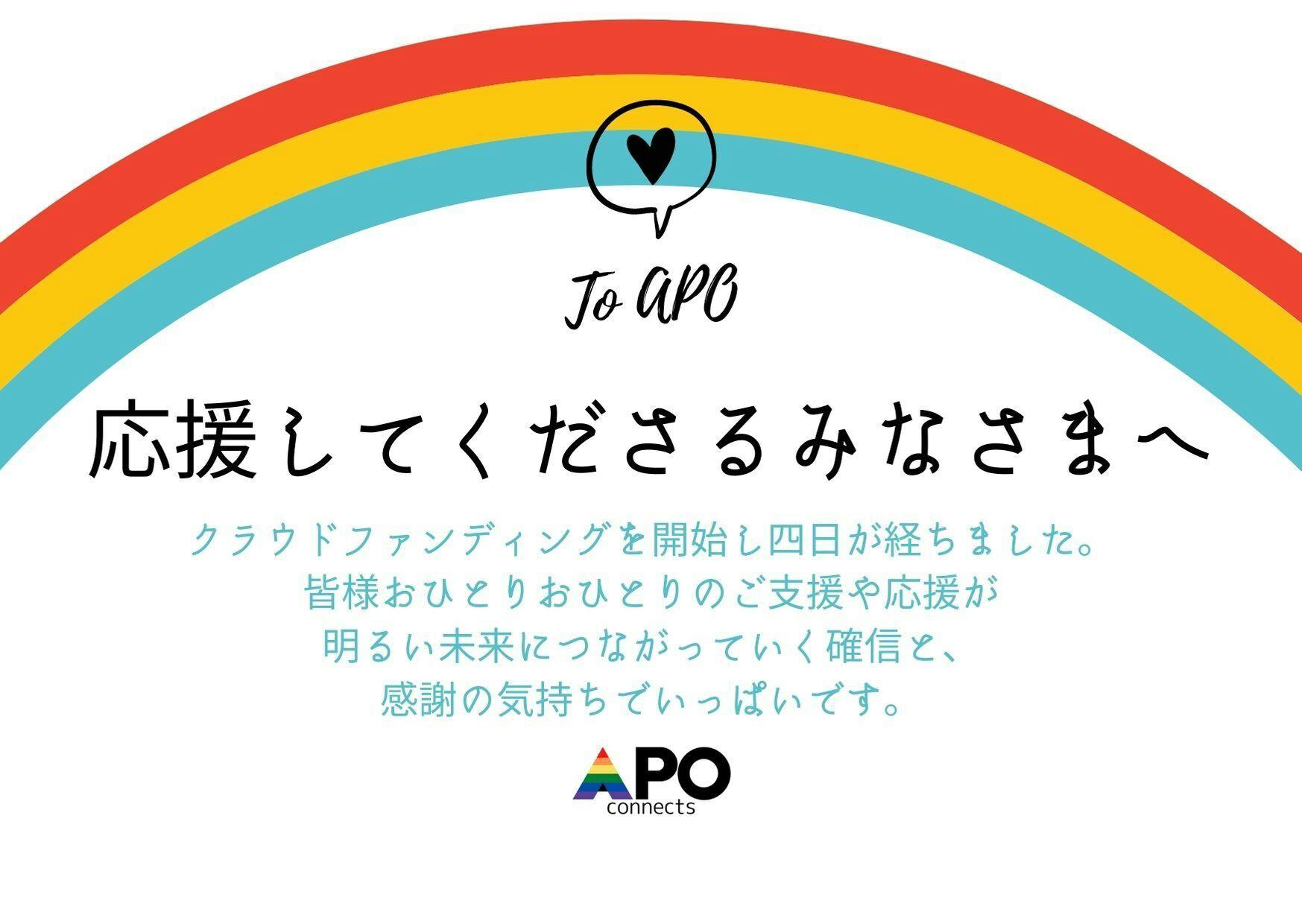 支援をしてくださった皆様へAPO connectsのクラファン4日目11時までの活動報告をさせていただきます。