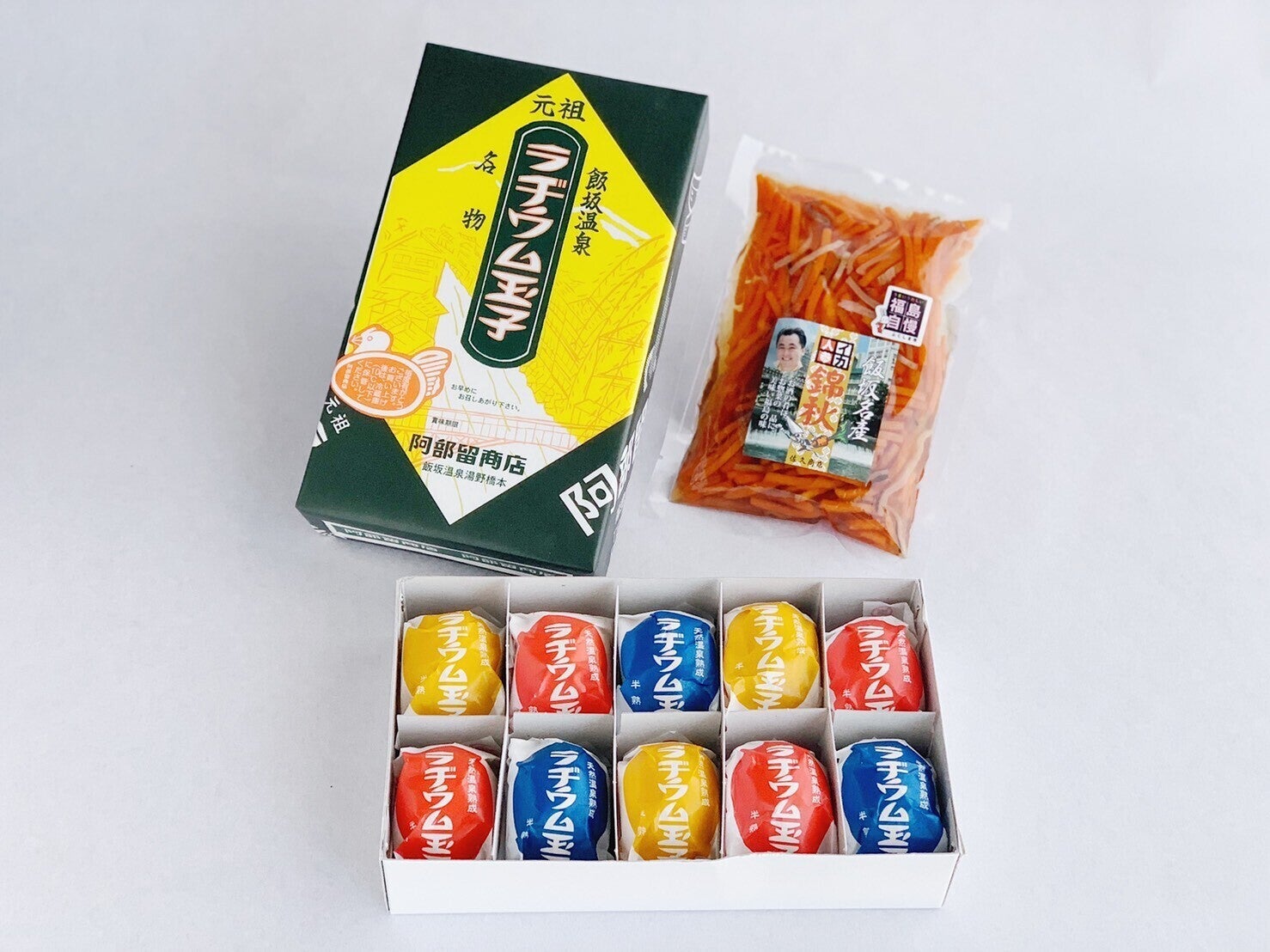 リターン品について、5000円のコースでは配信のアーカイブ視聴の権利と飯坂銘菓セットもしくは飯坂名物ラヂウム玉子と名産品セットの2種類からお選びいただけます。どちらも「名産品の味見」でアーティストの方も食べられるもので参加しつつ飯坂の味を堪能いただけます。