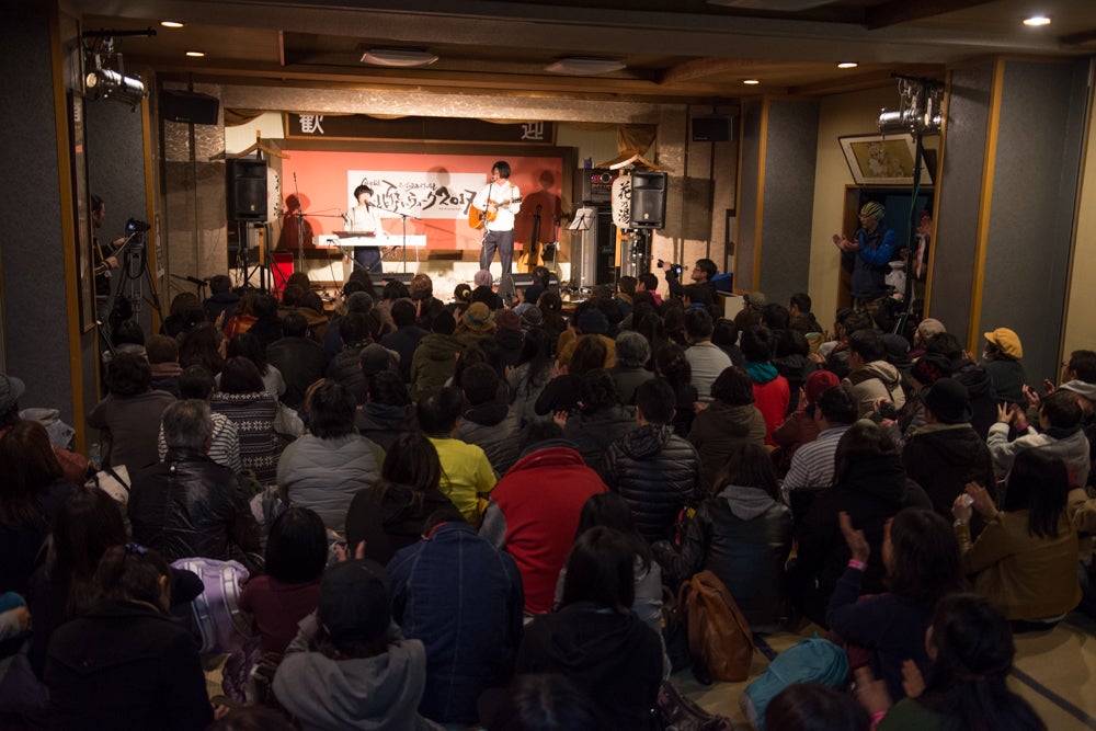 東日本大震災からの復興と飯坂温泉の魅力を様々な方に発信するため、飯坂温泉街の宴会場や蔵、バーなど各施設をステージにして回るというサーキットフェスで2013年から毎年春に開催をしております。