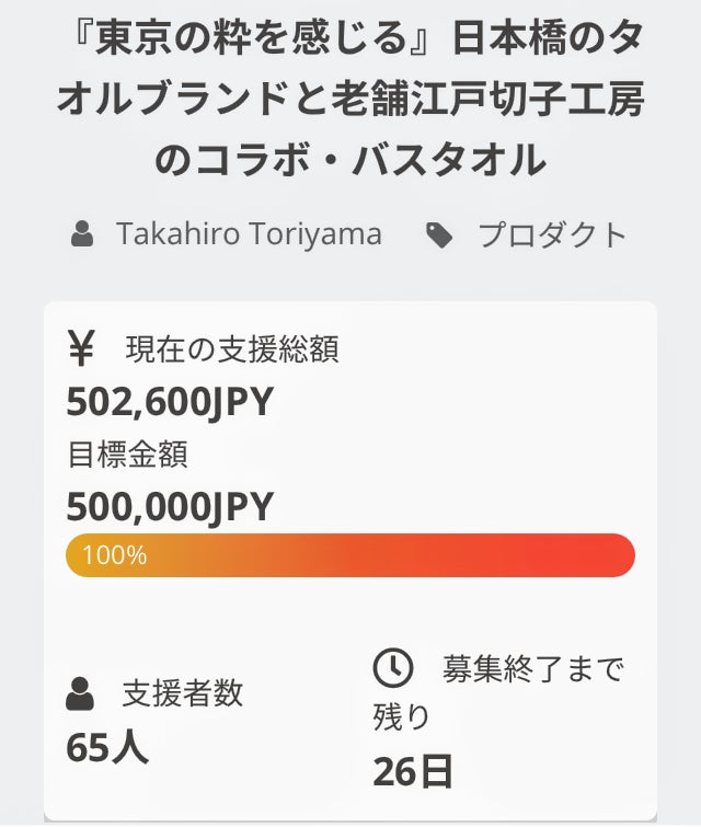 【公開72時間・目標額50万円・65名のご支援で達成!】