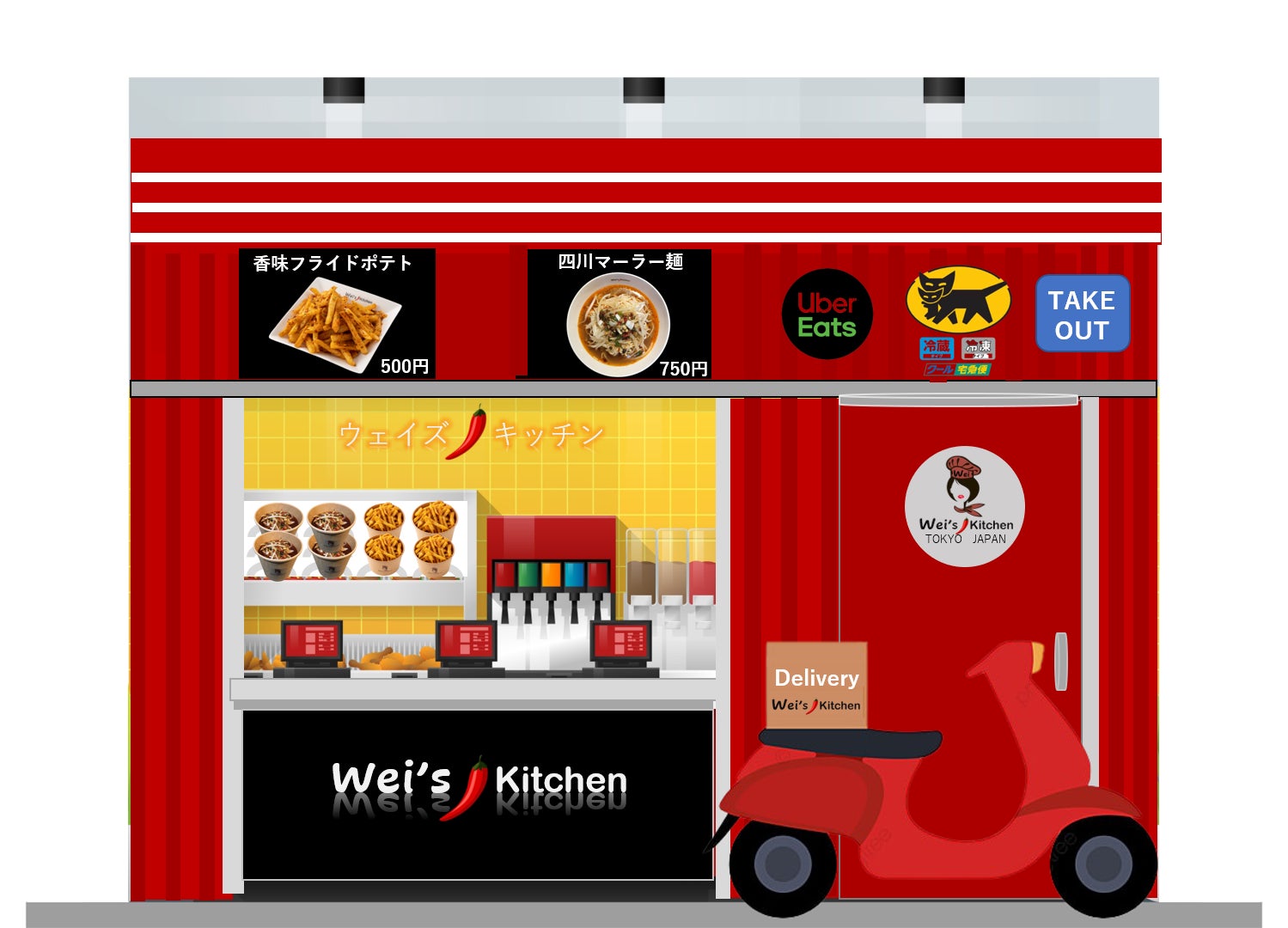 今回のプロジェクトで「ウェイズキッチン」がご提供する香味フライドポテトと四川マーラー麺を一人でも多くの人に食べていただき、冷凍食品を加熱しただけで確かに自宅で本格的な四川料理を味わえる、日本でこれまで食べたことがなかった旨味とコクと香りがする、そして少し辛いけどクセになる旨さだ!、「ウェイズキッチン」の商品なら間違いがない、と信頼関係を築いていくことが目的です。そして第三弾、第四弾と新しいメニューをご提案して、多くの方に信頼され支持されるようになった時点でイメージイラストのようなテイクアウトとデリバリー専門店のチェーン展開を実現したいと思っております。