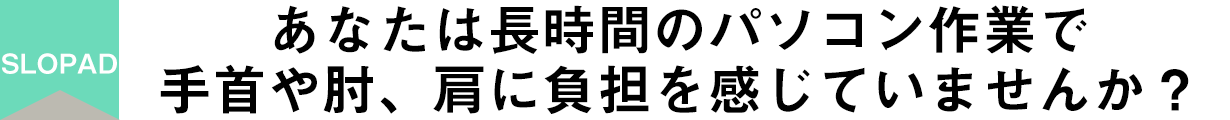 今回ご紹介するマウスパッド「スローパッド」は、「マウスを操作する手首を、腕全体でやさしく支え、手首が浮かず負担が集中するリスク」を減らします。また、手首をそらさず自然に握れることで、手首の可動域が広がり、軽快なマウス操作を実現しました。