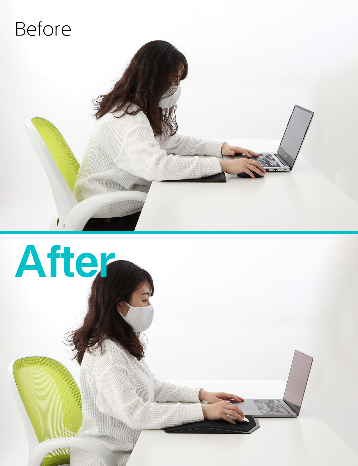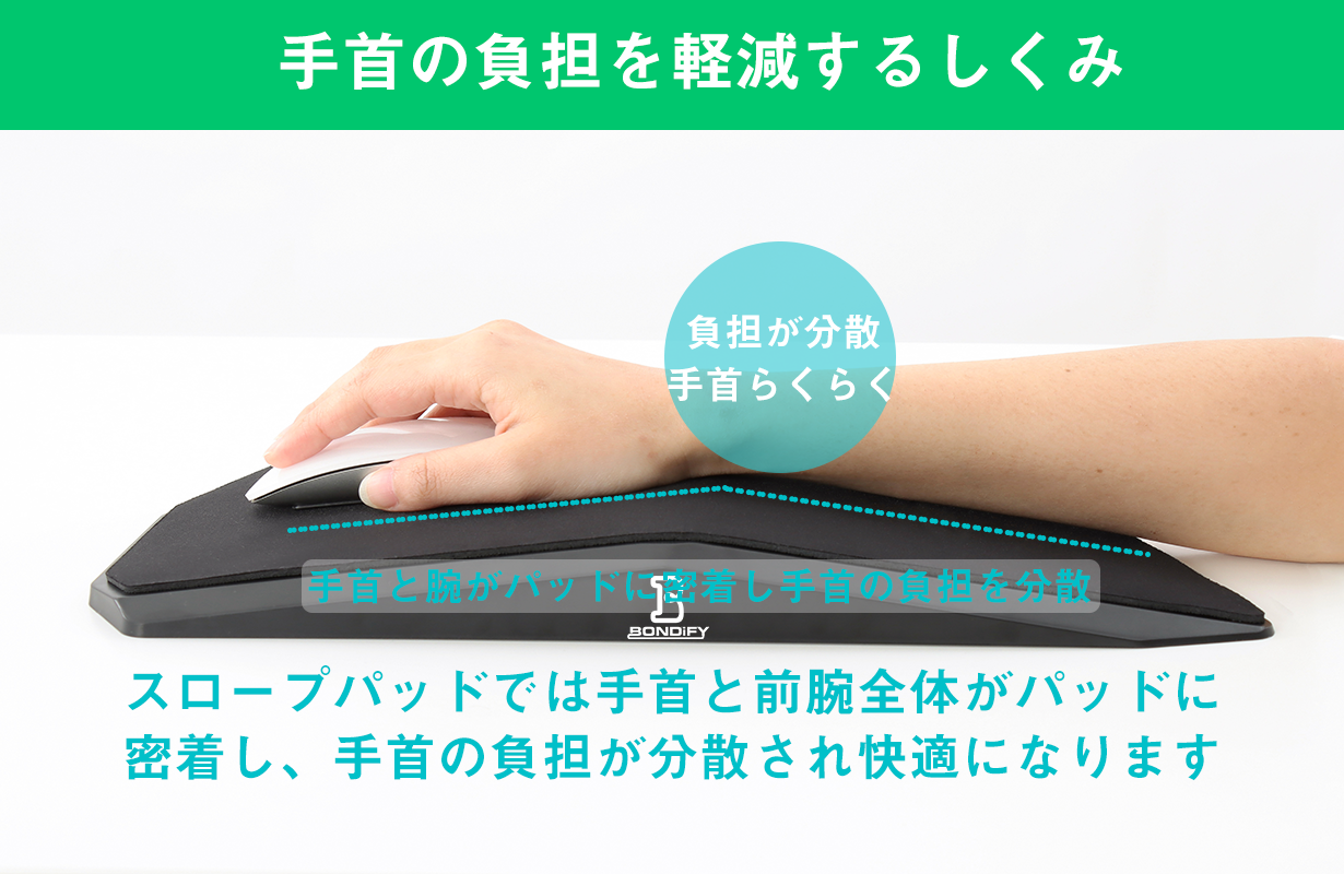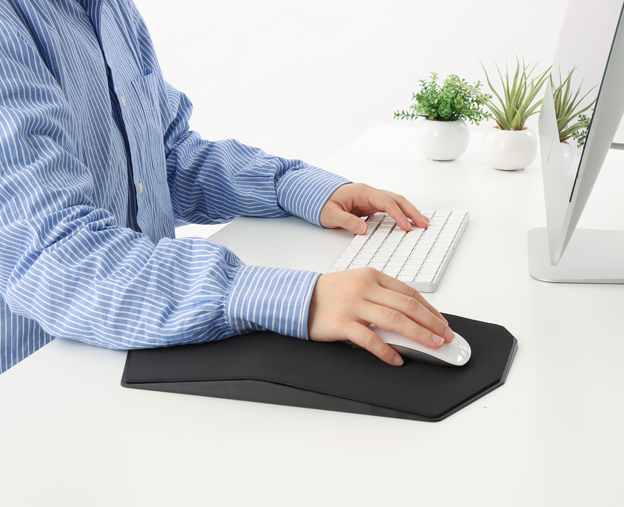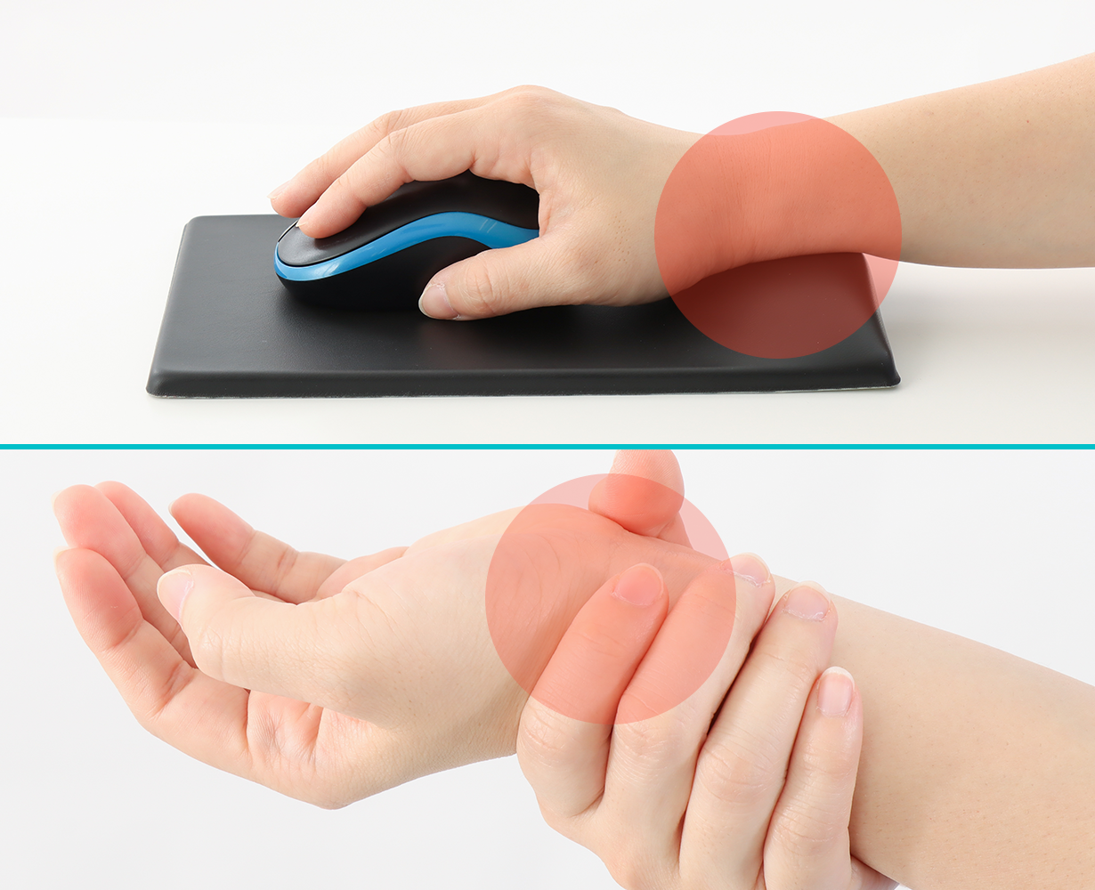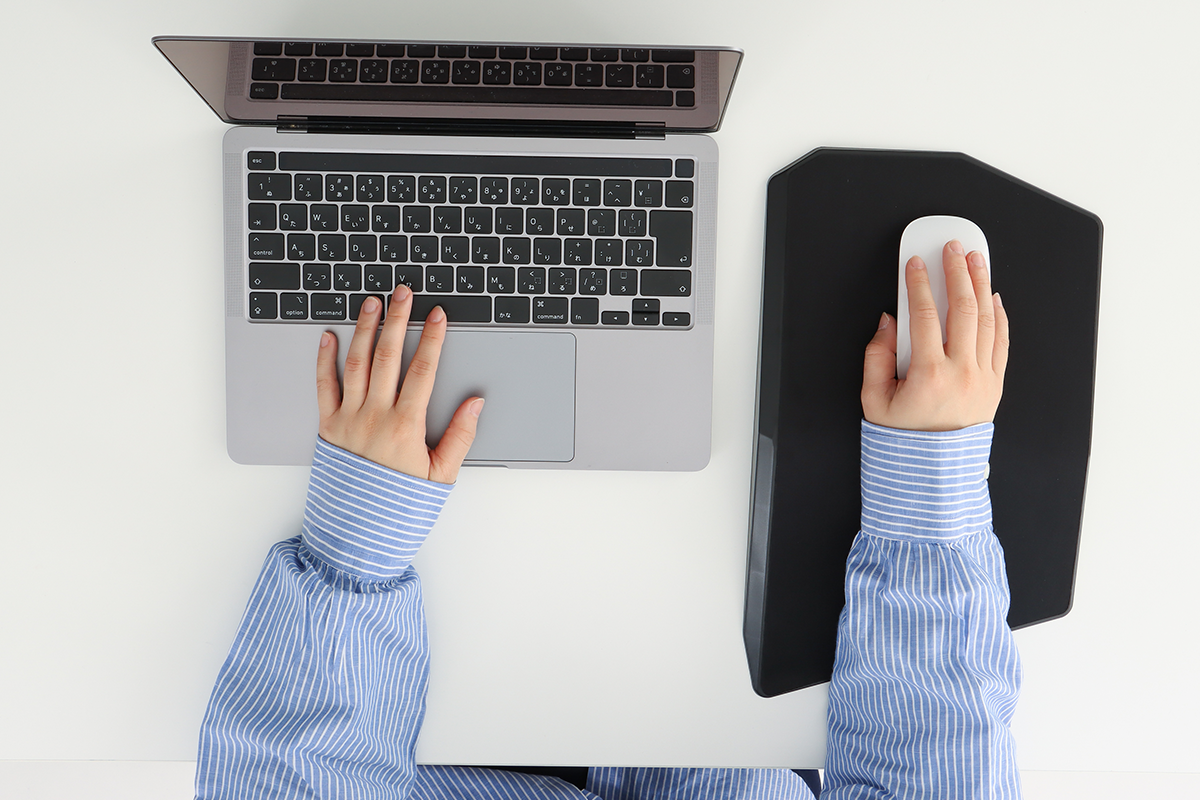 リモート全盛の昨今、仕事だけでなくゲームやショッピングなど、毎日何時間もパソコンに向かう人が増えました。日々のマウス操作では、手首を曲げて操作したり、手首を浮かせて操作することになり、関節が常に緊張状態に置かれ、手首に負担が集中する場合があります。時には手首だけでなく、肘や肩にも。