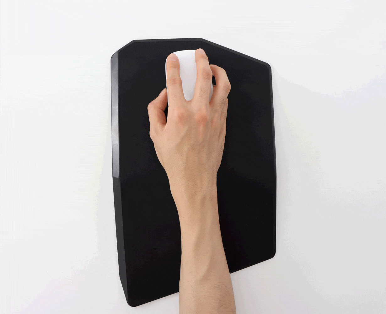私は以前から「マウス操作は手首の本来の角度とは違い、負担がかかるのでは」と考えていました。かかりつけの整体師に相談したところ、「手首は基本的に前へ曲げるほうが負担が少ない」と教えてもらい、手首に負担をかけずマウスを使えないか?と考えていました。それから市販のマウスパッドを改良して試作品を作り、このスロープ形状にたどり着きました。
