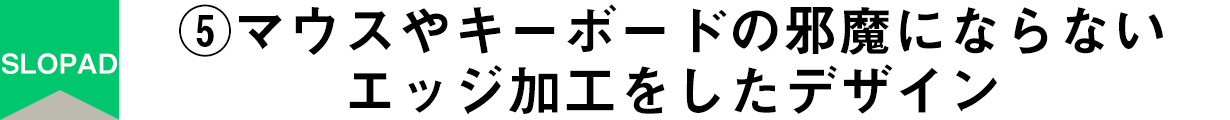 ⑤エッジ加工をほどこしキーボードとマウス間の移動を妨げません