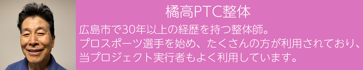 今回、広島市で30年以上の歴史を誇る橘高PTC整体の橘高先生から「スローパッド」を推薦いただき、コメントをいただきました。
