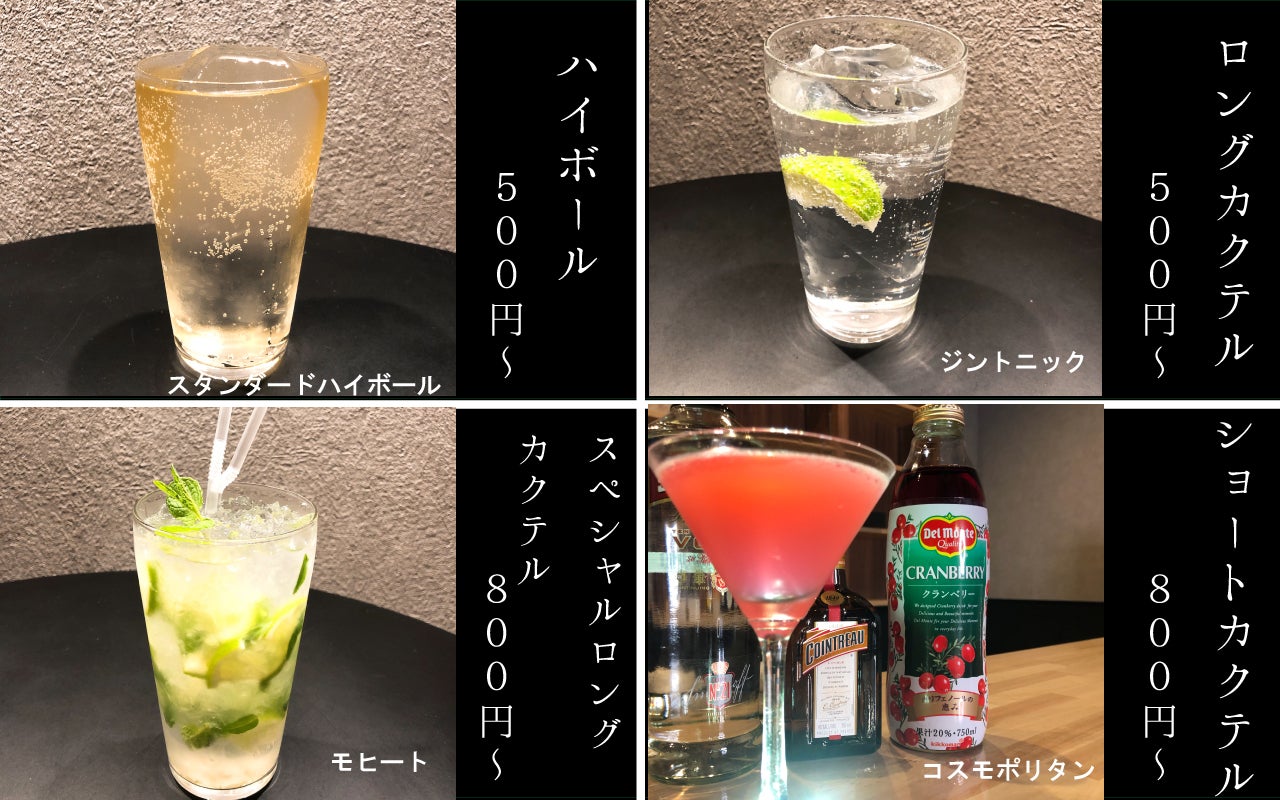 ハイボール、生ビール、カクテル各種 ¥500〜