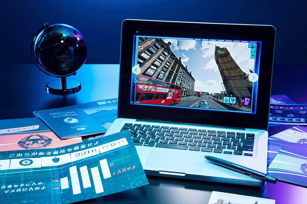 ナゾトキの手がかりが入ったツールがおうちに届いた瞬間からナゾトキスタート!専用WEBサイトにアクセスし、手元のツールとストリートビューを使って、ナゾトキに挑戦していきます。ロンドンをはじめとしたリアルな街並みを360°のパノラマで見渡して進めていきます。