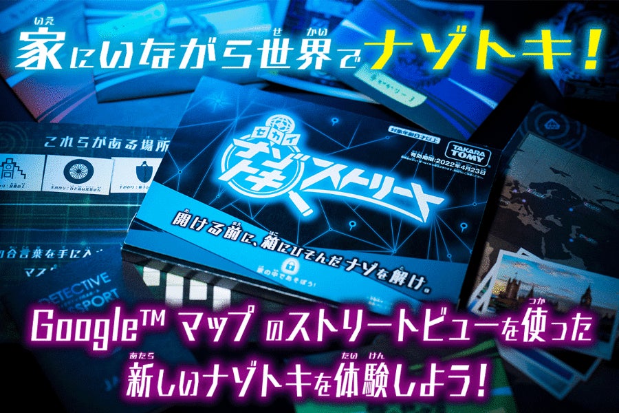 子供から大人まで人気のナゾトキ、さらにGoogleマップのストリートビューを使うことで、家にいながら新しい「ナゾトキ体験」を楽しめる商品になりました。