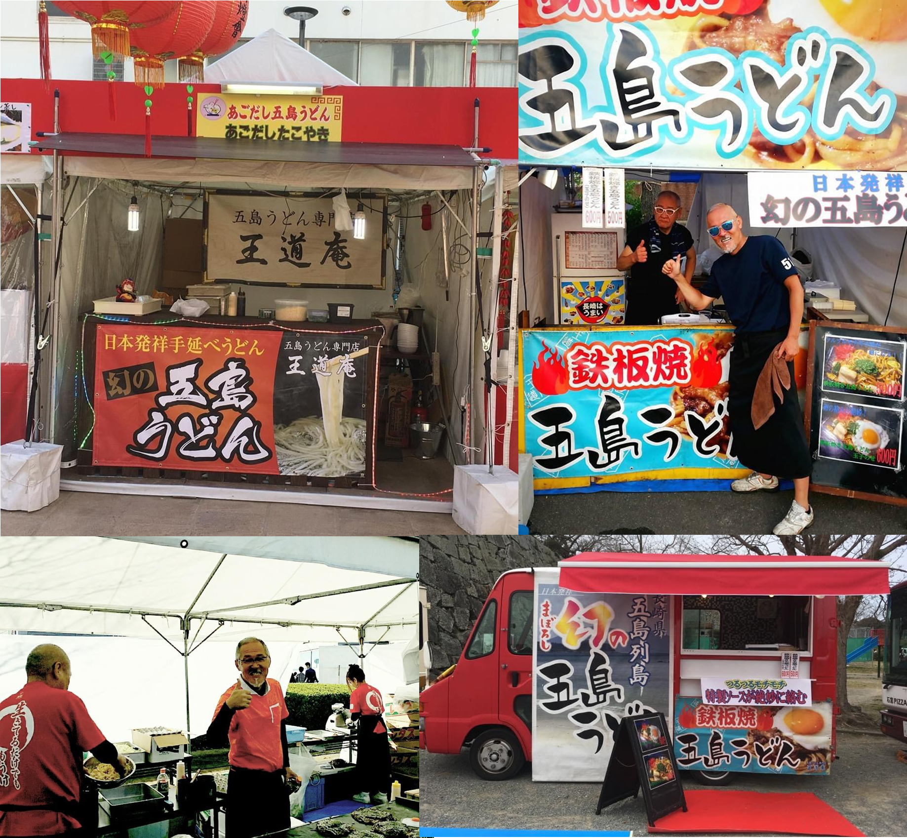 7年前には博多の歓楽街中洲にうどん屋をしたいと相談があり「王道庵・中洲店」を無償で全面協力をしてサポートしました。しかし、残念ながら半年後、突然先方の都合で辞められてしまいました。その経験があってもう他力本願は辞めよう、自分の力で頑張ろう!そう思い、6年前からお店は最高のパートナーである店長に任せ、移動販売事業を立上げ、九州管内を走り回っております。5年間は赤字続きで高速道路代を惜しみ、何処に行くにも国道を走って周りました。案内頂いたイベントは一度も断る事なく、勿論愚痴言わず頑張ってきました。その甲斐あって石の上にも三年と言われてますが、5年間頑張った結果、一昨年一気に花が咲き、先の展望が見えてきました!また、博多の親友から1年間しか使っていないキッチンカーを自分の応援をしたいから個人リースで使わないかとありがたい支援を頂き、新しいキッチンカーに変えました。ところが入れ替えた途端、突然のコロナ禍で全てのイベントは中止!昨年は長崎ランタンフェスティバルに一度出店しただけでその後のイベントやお祭りは全て中止になり、移動販売事業も昨年の半分どころか1割も売り上げることが出来ませんでした。そして今年も長崎ランタンフェスティバルを始め、今のところ一度もイベントが開催されておらず、3月〜4月の福岡城桜祭りも中止、長崎帆船祭りに関しては直近になって中止・・・。長崎くんちも早々と中止の案内が出ました。
