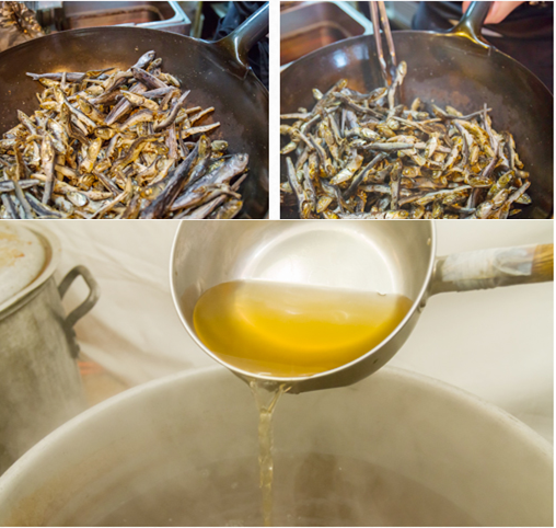 干しアゴを仕入れ、焦がさないように、炒るようにして焼く 【ゆで方のこだわり】