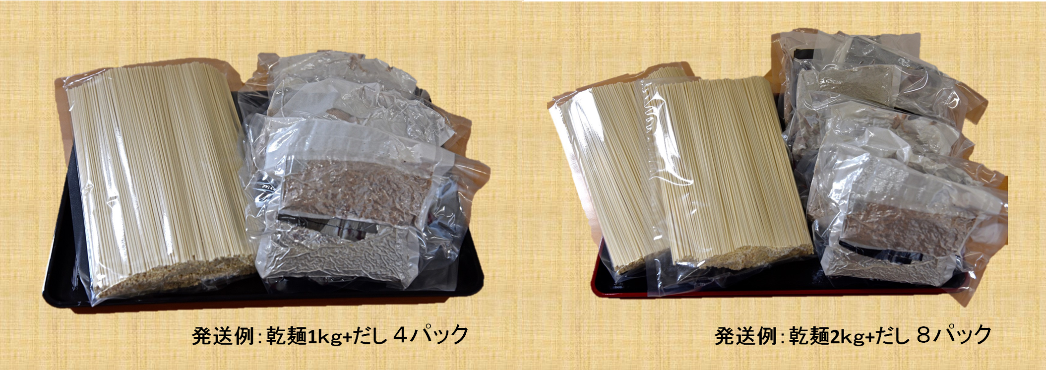 乾麺は1kgを1袋にしお送り致します。だしパックはお使い頂きやすいように、だし昆布と茶パックのような形状に入った粉末でお届けします。常温にて発送致します。発送時期は10月初旬ごろを予定しています。