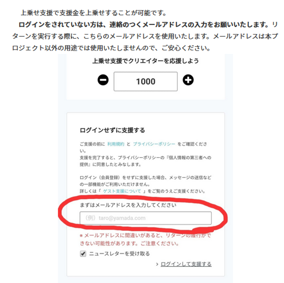 ③下記画面で上乗せ金額指定可能です。是非上乗せでのご支援宜しくお願い致します。