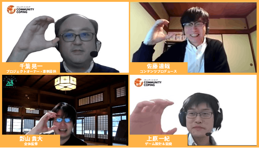 私たちは、コミュニティコーピングを通じて、「困っている人が助けを求める」だけではなく、まわりの私たちがちょっと勇気を出して声をかけてあげるきっかけと、何か困難な出来事に直面したときに、「これはゲームで体験したあの時の状況では?」という気づきを、楽しみながら広めていきたいと考えています。
