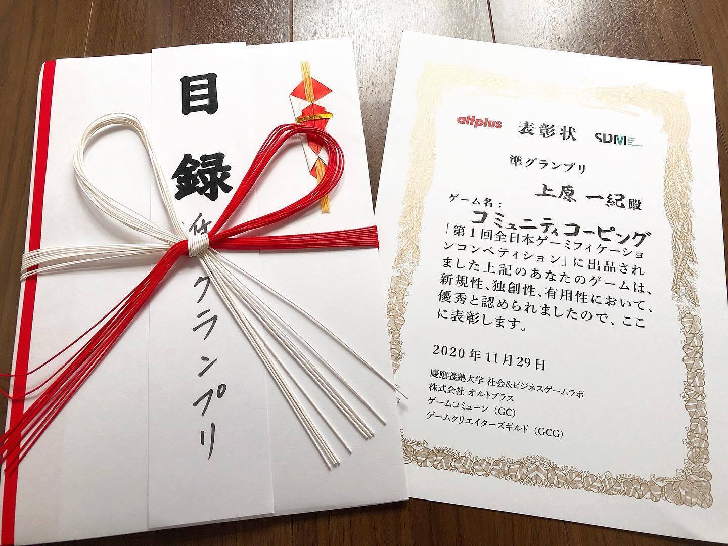 また、2020年11開催の第一回全日本ゲーミフィケーションコンペティションでは、ゲームの社会性を評価いただき、準グランプリを受賞することができました。