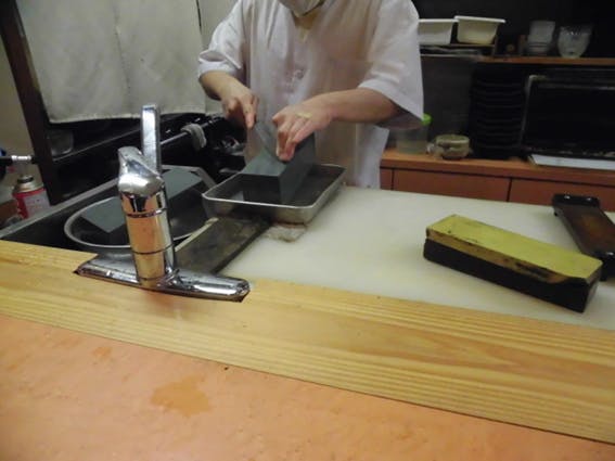 (研ぎ写真:割烹 荒川 若大将 福井さん)