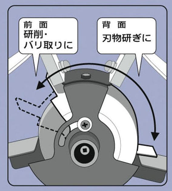 ●1台で縦と横向きの2通りに使用できるダイヤモンド砥石の刃物研ぎ。