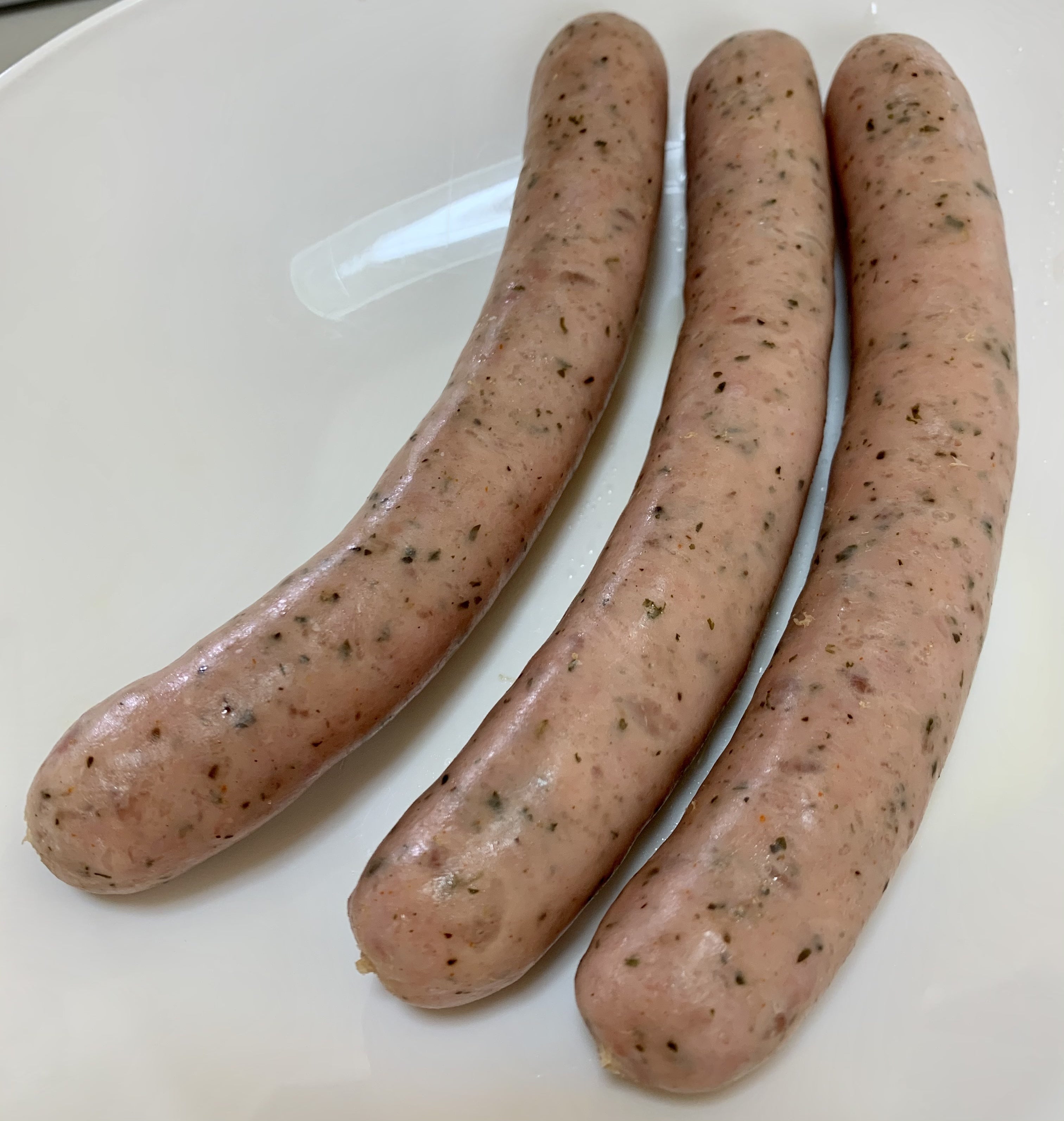 冷凍、袋のまま湯煎ほんのりハーブの香り羊腸のパリッと感と肉汁の旨味が口の中に広がります。ワイン、ビールが進む一品です。