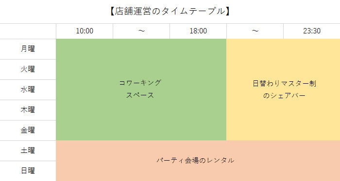 以下のように、営業時間に合わせて区切りを設ける予定です。