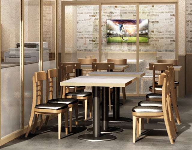 ▼2人掛けデーブル席:一般的なカフェよりも大きなテーブルで快適に作業できます