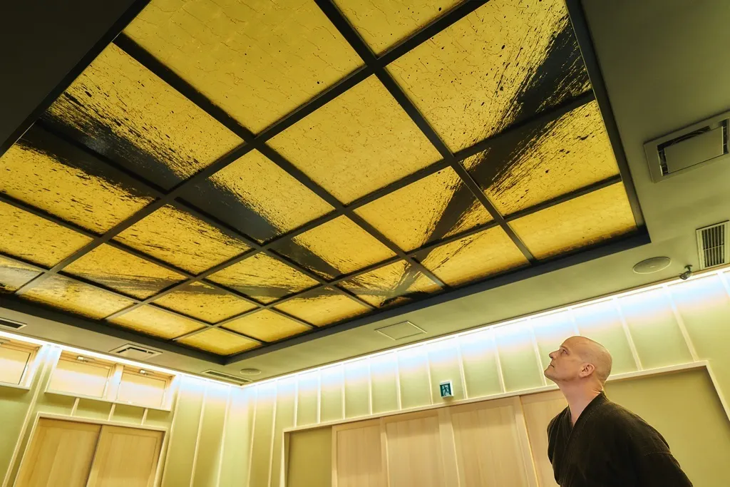 この天井絵は「Devotion(献身)」と命名され、ヒューエット氏によれば、作品名は熊野皇大神社とゆかりの深い日本武尊(ヤマトタケルノミコト)の妻である弟橘姫(オトタチバナヒメ)が、夫に示した献身に対するオマージュとのこと。