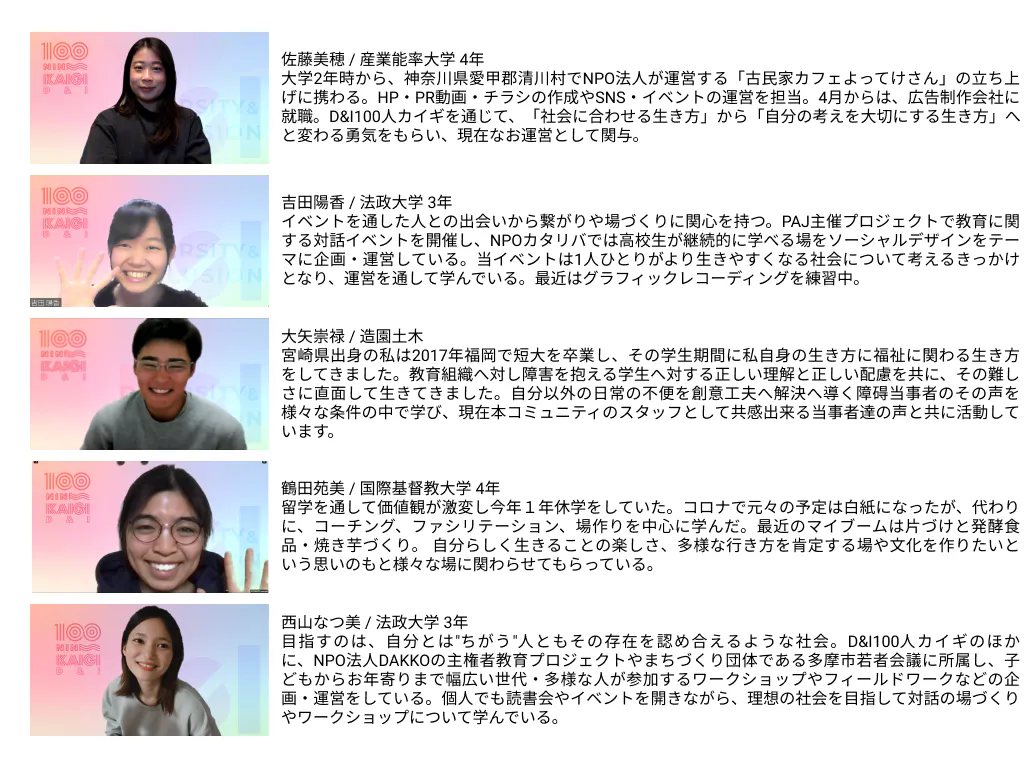DIVERSITY & INCLUSION 100人カイギ運営スタッフ 佐藤・吉田・大矢・鶴田・西山