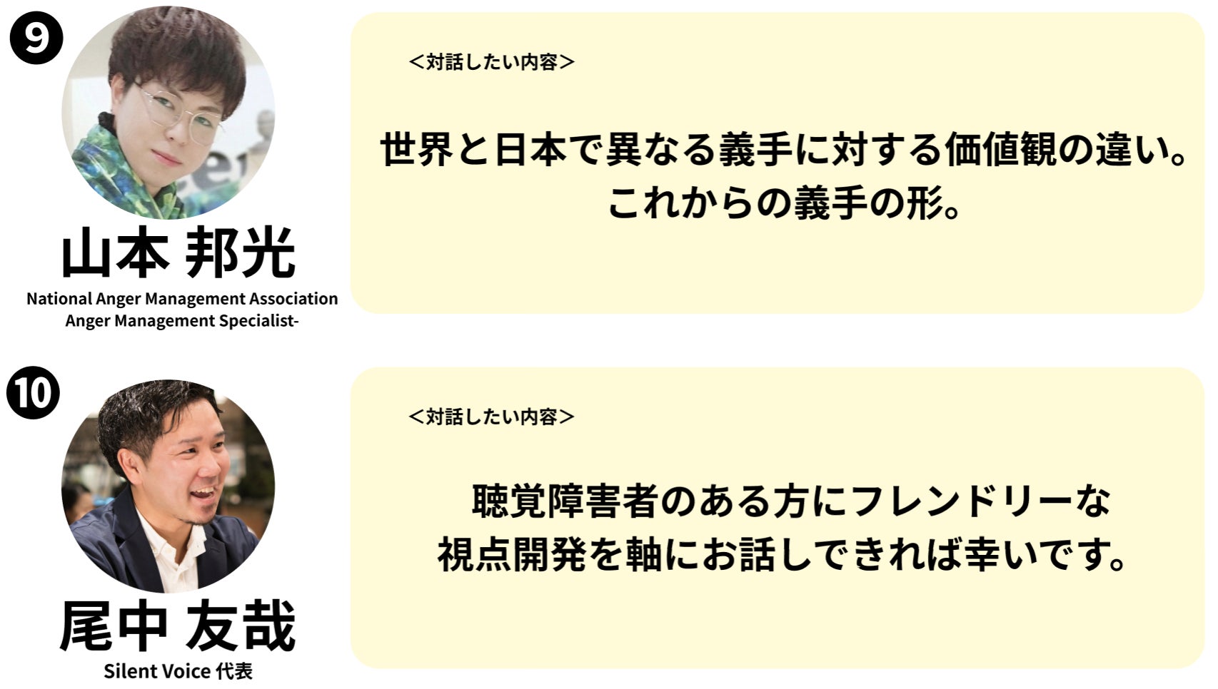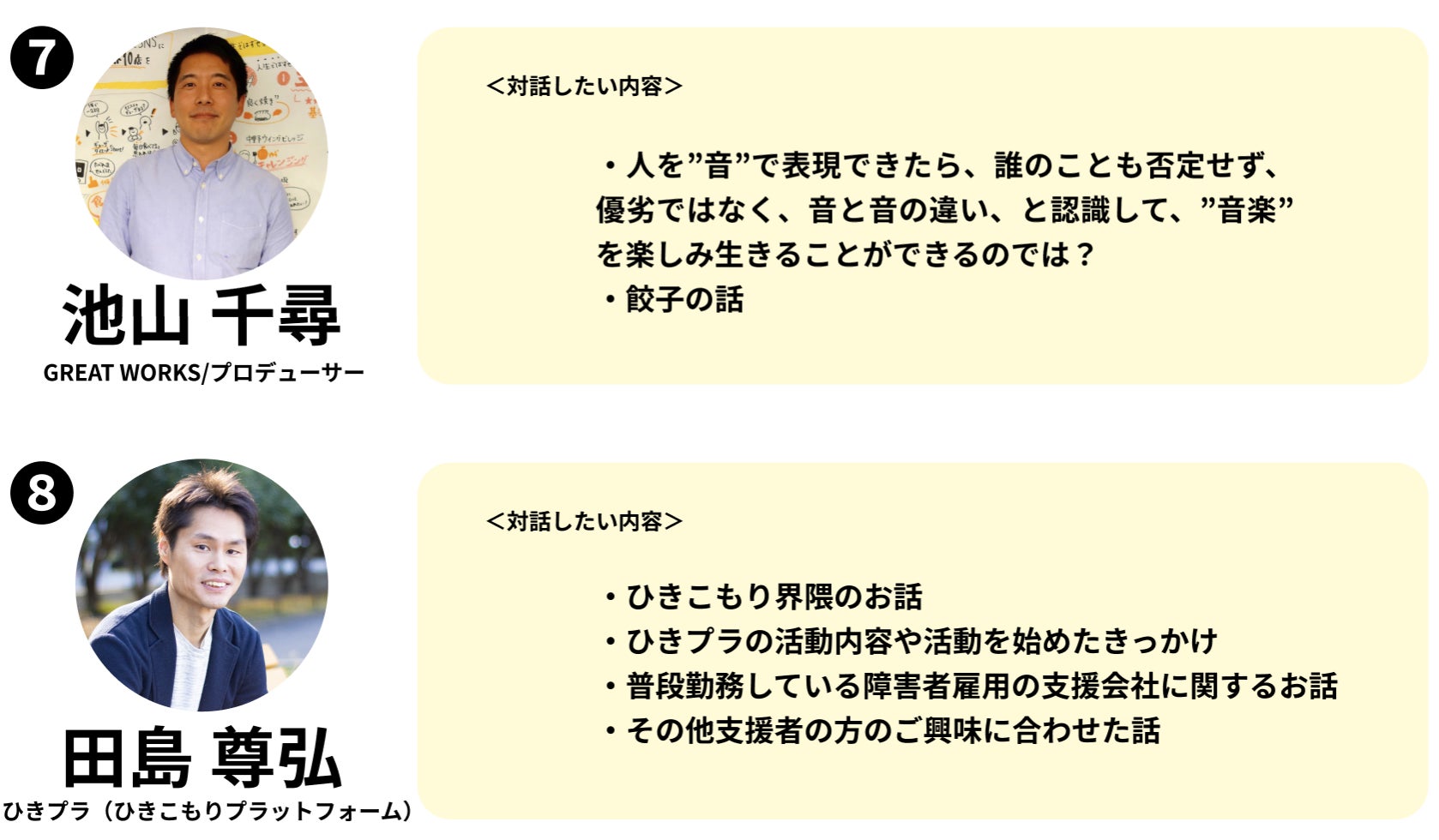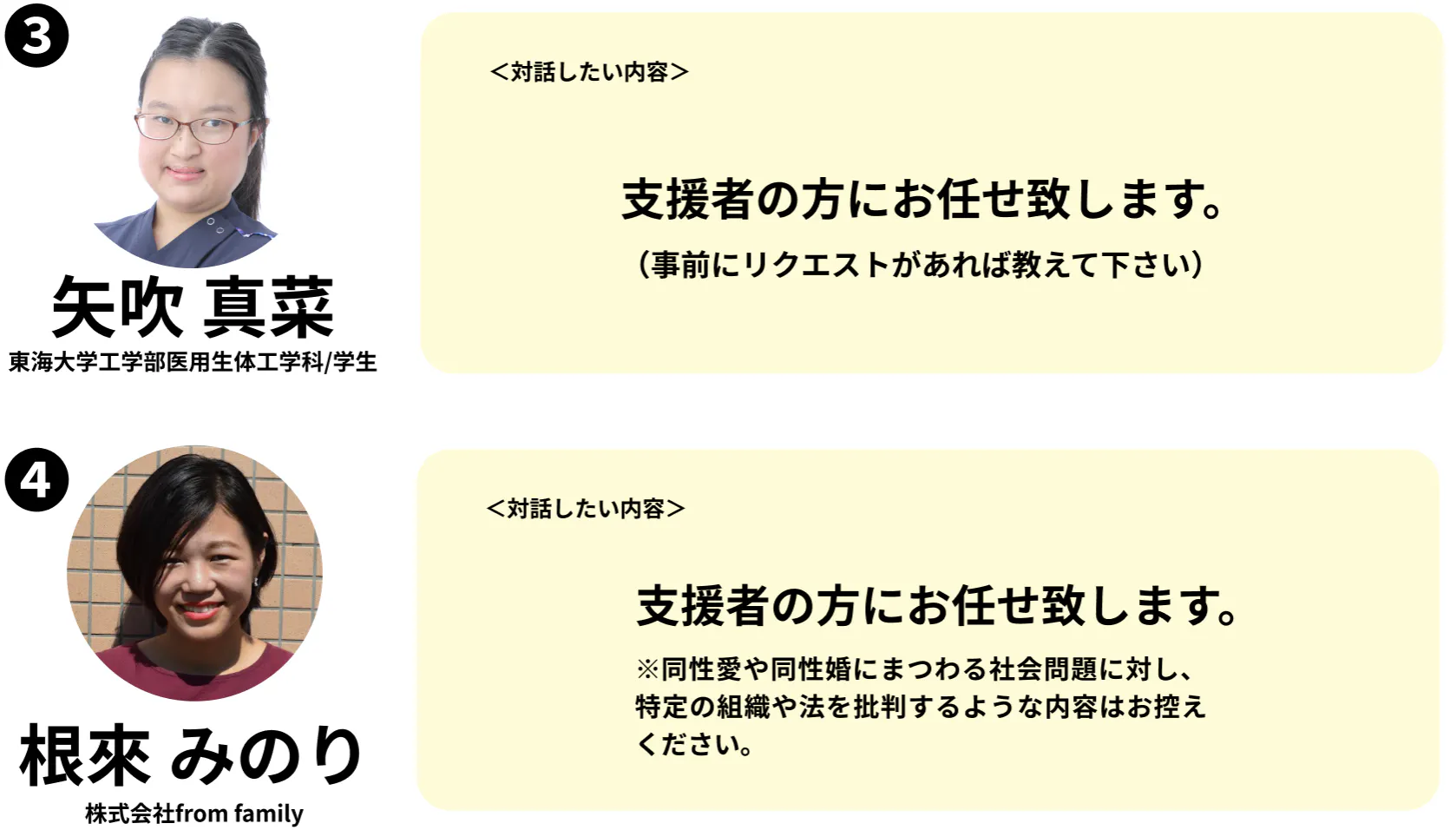 ※お話し頂ける内容は、各ゲストによって異なります。