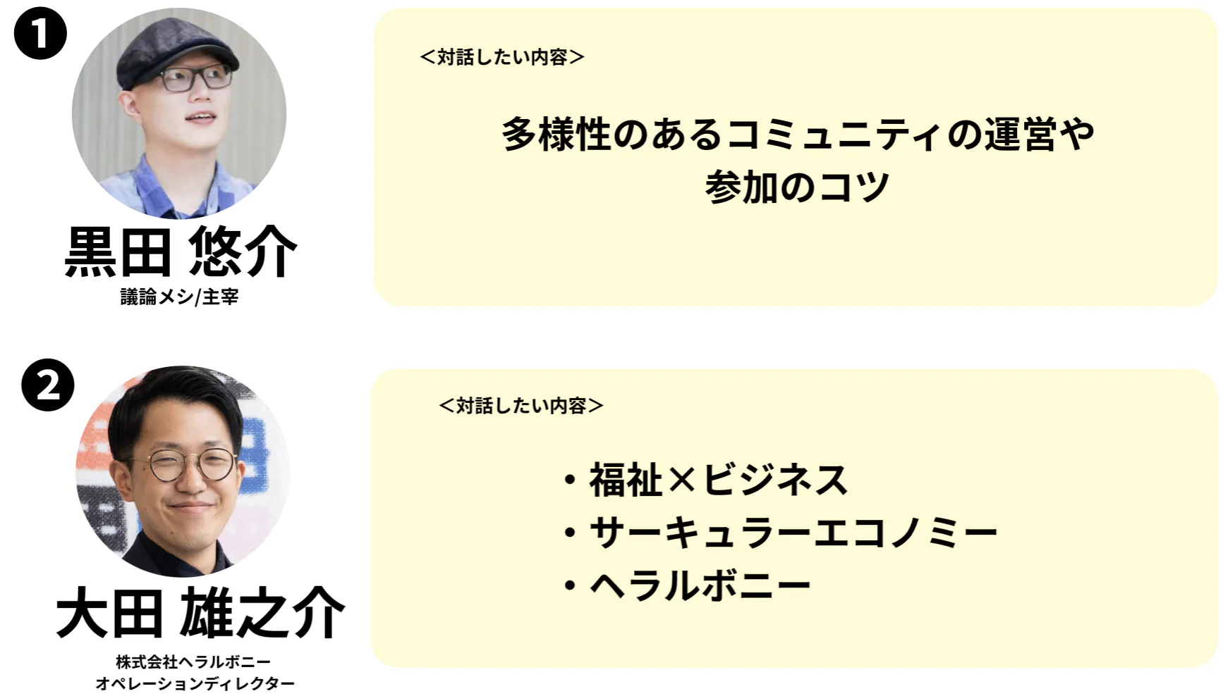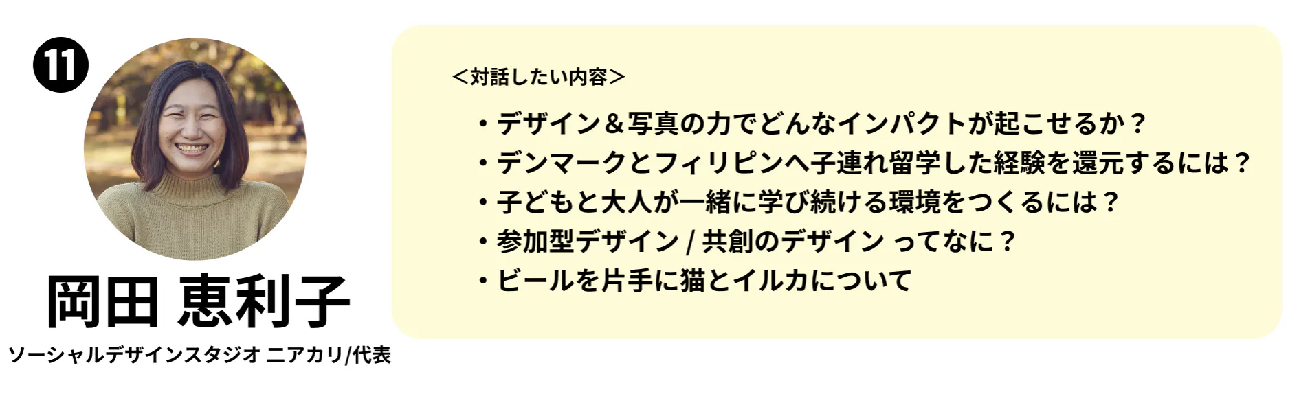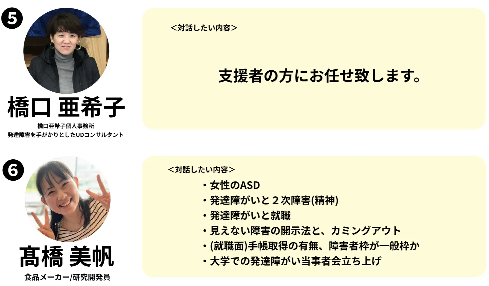 ※お話し頂ける内容は、各ゲストによって異なります。