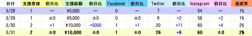 数字上はかなり停滞の日となってしまいましたが、水面下では皆様にプロジェクトの魅力をより 伝える企画を多数進めておりますのでSNSをフォローしてお待ちください。また、現在Twitterの伸びが著しいので他SNSももっと伸びるよう努力してまいります。