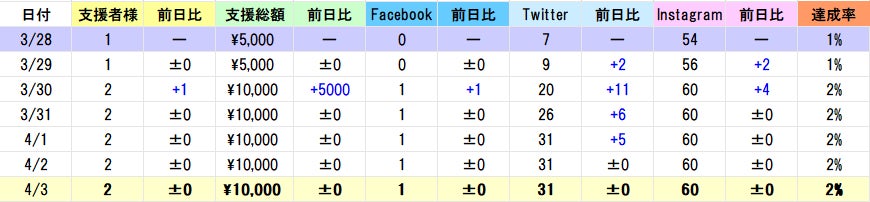 数字上はかなり停滞の日となってしまいましたが、水面下では皆様にプロジェクトの魅力をより 伝える企画を多数進めておりますのでSNSをフォローしてお待ちください。また、現在Twitterの伸びが著しいので他SNSももっと伸びるよう努力してまいります。