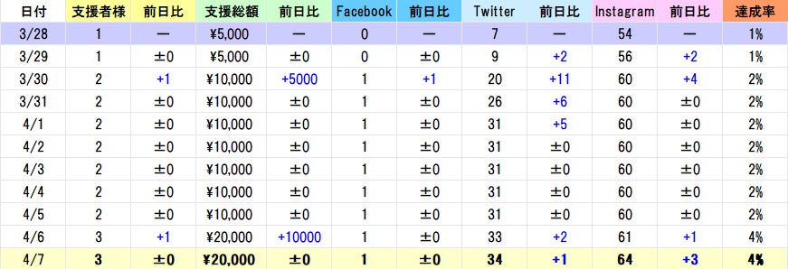 写真が皆様の心に届いたのか、ここのところ停滞していたSNSのフォロワー数も増加傾向にあります。ただ、今後もこれに慢心せず謙虚に宣伝を続け、達成に向けて懸命に努力をいたします。引き続きSNSをフォローしてお待ちください。