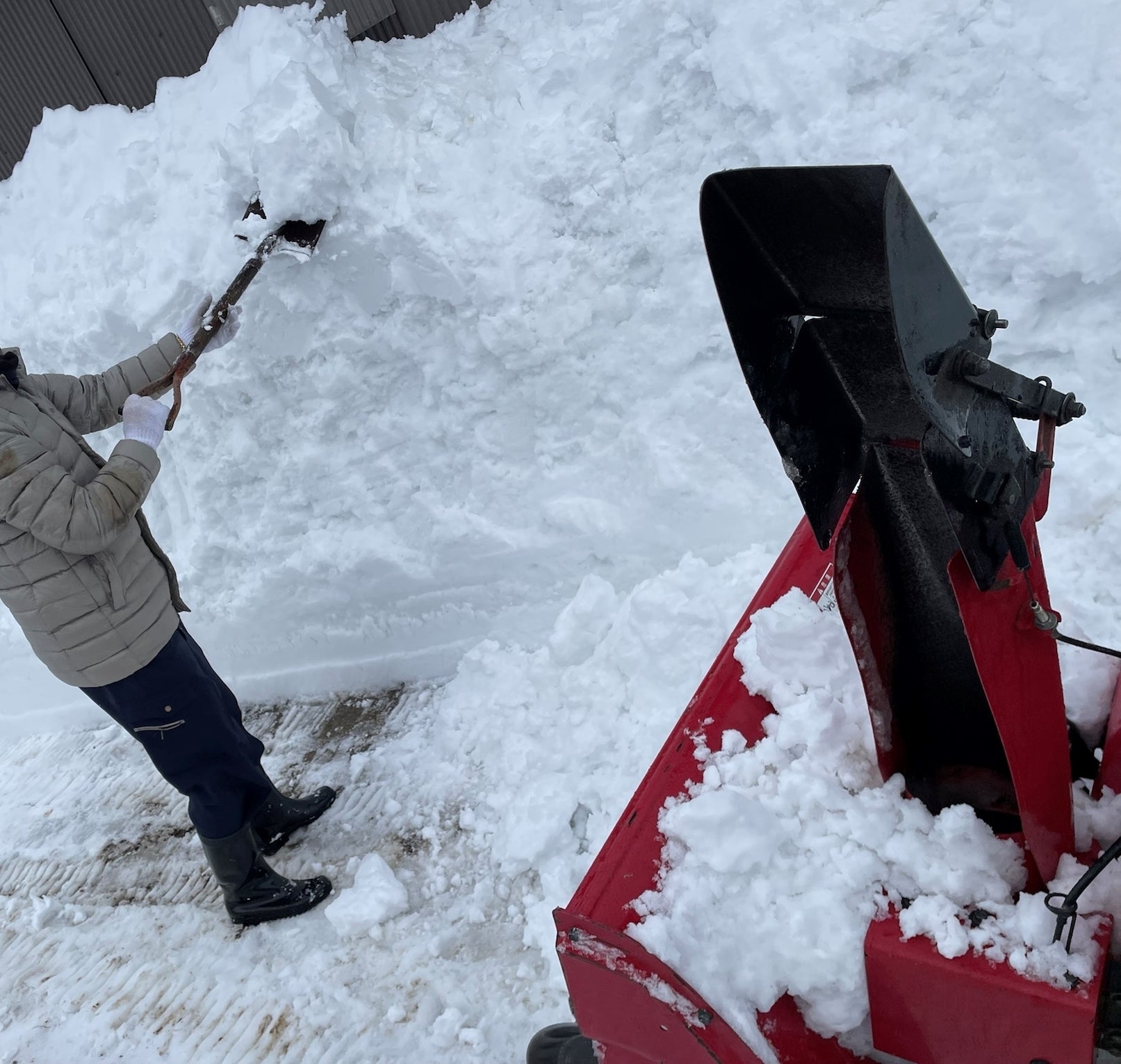 晴れの日は、シェルターの雪下ろしと雪を運び出すお仕事で大忙しです。